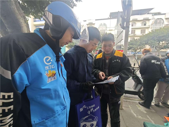 为切实保障新业态从业人员的合法权益,提升外卖骑手的职业伤害防范意识和应急处置能力,11月21日,崇州市人力资源和社会保障局走进唐安西路外卖站点,开展了新业态从业人员职业伤害保障专项宣传活动。