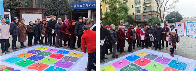 趣味游戏区人气爆棚,成为居民们最喜爱的环节。垃圾分类套圈游戏中,代表不同垃圾类别的目标物整齐排列,居民们手持套圈瞄准投掷,精准套中的居民满脸自豪,未套中的也不气馁,在反复尝试中加深对垃圾类别的记忆;趣味飞行棋环节则将垃圾分类知识与经典游戏巧妙结合,大家在棋盘上斗智斗勇,时而为正确答题欢呼,时而为精彩走位喝彩,在欢声笑语中巩固了分类知识,彻底打破了“垃圾分类枯燥”的固有认知。闯关完成后,居民们在礼品兑换处纷纷兑换礼品。